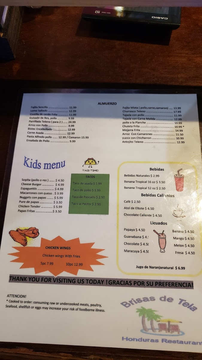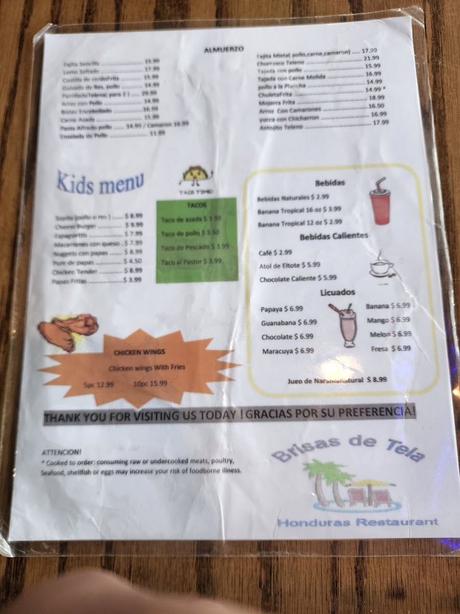 Brisas De Tela Menu